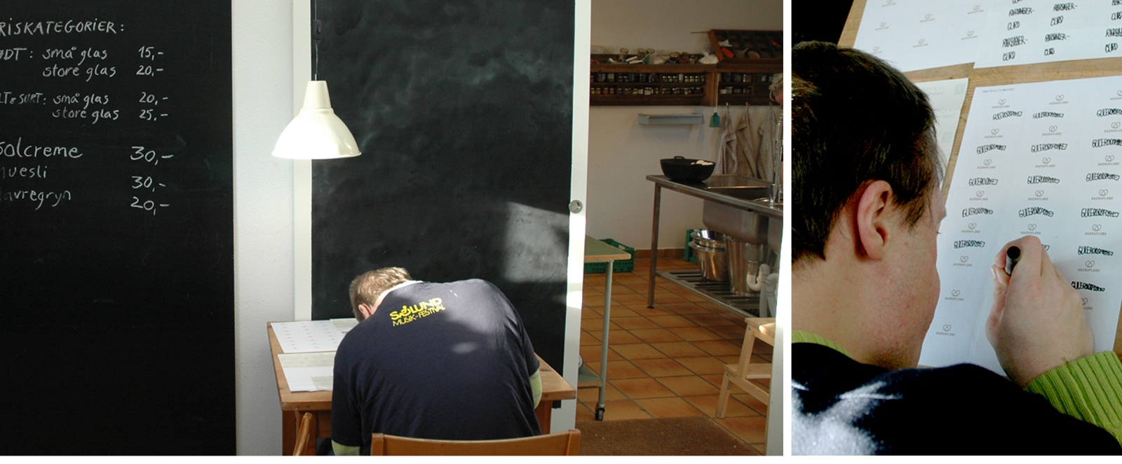 "Det er altså hårdt at skrive alle etiketterne selv" siger Peter. Han arbejder i Køkken- og Haveværkstedet på Hadruplund, som er et helhedstilbud til udviklingshæmmede.
