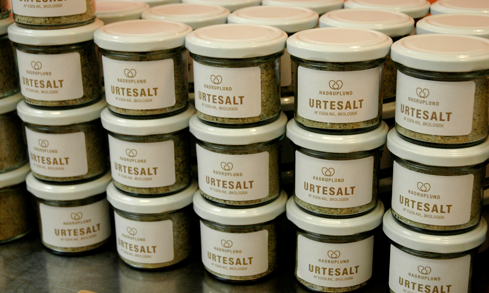Mille Fine Bjerre har designet logo og etiketter til Køkken- og Haveværkstedet på Hadruplund – og hjulpet Hadruplund igang med en løsning, hvor de selv kan printe etiketterne på særligt etiketpapir. Selve logoet er tegnet med udgangspunkt en bevægelse fra eurytmien, som symboliserer 'det harmoniske 8-tal'.